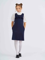Сарафан из трикотажного полотна, застегивается на металлические пуговицы. Удобный круглый вырез горловины добавляет нотку нежности и подходит к любому типу фигуры. Модель прекрасно комбинируется с различными топами и блузками, позволяя создать множество образов для школьных будней.