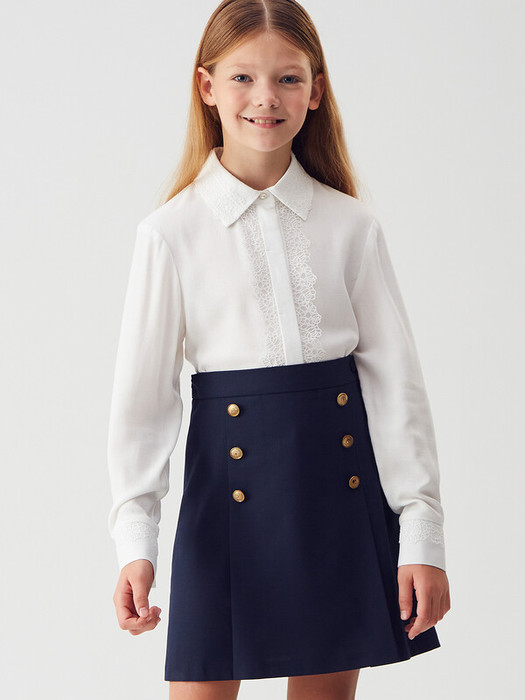 Романтичная блузка из вискозы полуприлегающего силуэта с кружевом на воротнике , по передней части изделия и на манжетах. Вискоза обеспечивает отличную воздухопроницаемость и комфорт в повседневной носке. Отличное решение для создания романтичных образов маленькой модницы. "
