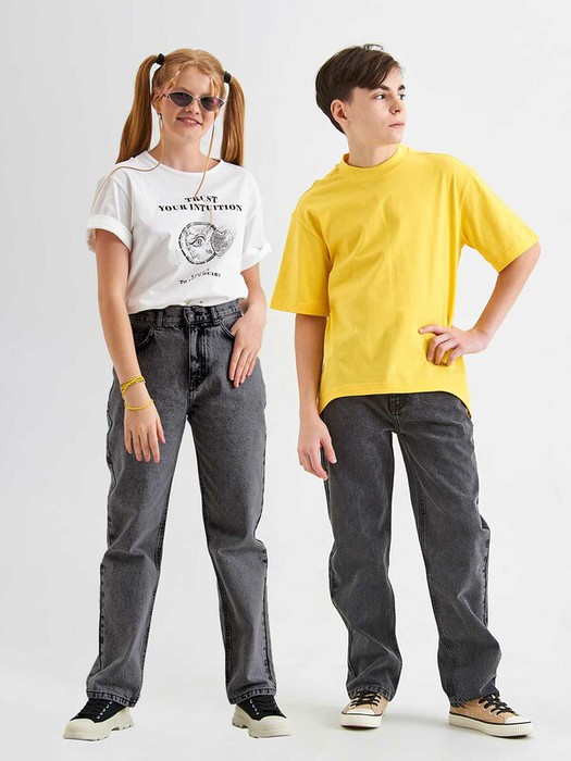 Модные джинсы из хлопка 12 унций прямого силуэта полной длинны с посадкой на талии. Модель имеет классический дизайн с пятью карманами с кокеткой сзади. Внутри пояса дополнительная система для регулировки размера. Модель задумана дизайнерами SMENA как унисекс - подходит и мальчикам и девочкам.