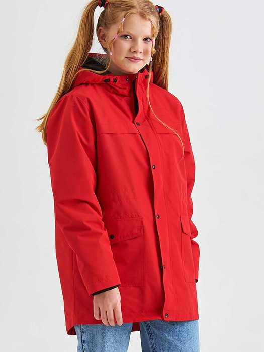 Куртка-ветровка на хлопковой подкадке c несъемным капюшоном. Внутри кулиска со шнурком для регулировки ширины изделия, в рукавах трикотажные манжеты, два накладных кармана с клапаном.