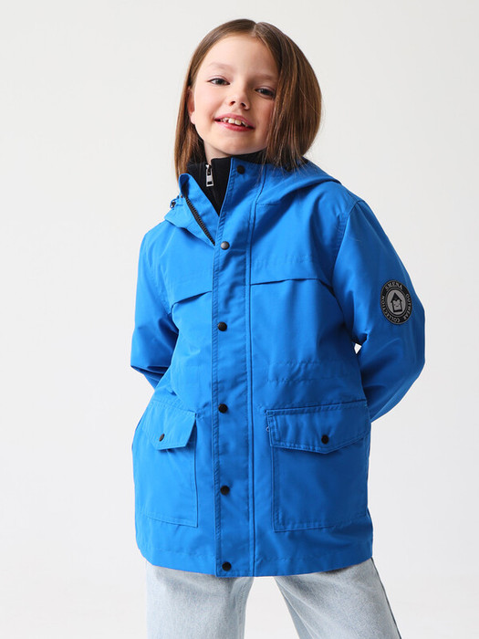 Куртка-ветровка на хлопковой подкадке c несъемным капюшоном. Внутри кулиска со шнурком для регулировки ширины изделия, в рукавах трикотажные манжеты, два накладных кармана с клапаном.