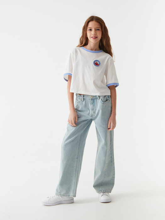 Укороченная футболка для девочки из 100% хлопка. Свободный прямой силуэт и приспущенное плечо. Круглый вырез горловины. Оверсайз силуэт даёт возможность расслабиться и показать всем твою уверенность. Контрастная окантовка и патч с вишней и надписью NO DRAMA CLUB. JUST RELAX (с англ. «никакого драматического клуба. просто расслабься») насыщают футболку деталями. Размерный ряд 128 – 176 см.