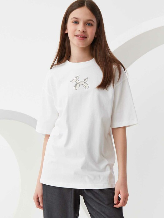 Футболка оверсайз силуэта с контрастным принтом. Мягкий трикотаж из 100% хлопка. Свободный крой со спущенным плечом. Круглый вырез горловины и короткий рукав. Популярный крой оверсайз и спущенная линия плеч позволяет чувствовать себя свободно. Размерный ряд 128 – 176 см.