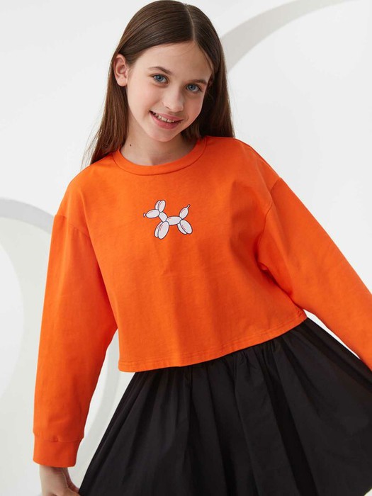 Укороченный свитшот оверсайз в спортивном стиле с принтом на груди. Мягкий хлопковый трикотаж. Свободный крой со спущенной линией плеча. Круглый рельефный вырез и длинные рукава с эластичными манжетами. Размерный ряд 128 – 176 см.