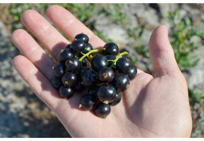 Округлой формы ягоды смородины Титания неравномерны: сверху кисти более крупные, снизу меньше, весом от 1,5 до 2,5 г, есть по 3-4 г. Кожица глянцевая, черная, плотная, но легко съедаемая. Сочная мякоть зеленоватая, характеризуется плотной консистенцией, без водянистости. На вкус приятная, кисло-сладкая, с выраженными винными нотками и специфическим смородиновым ароматом. В ягодах черной смородины Титания содержится 6,6% сахара и 170 г аскорбиновой кислоты. Дегустаторы оценили вкус ягод сорта в 4,6 балла.