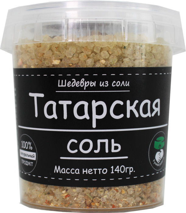 Эта соль с "характером". Пряно-острая с сок из листьев зеленого хрена. татарская кухня более богата по специям и акцент делается именно на пряно-острые компоненты. Хрен, черный и острый перец, чеснок, горчица все в ней есть, и изюминка этой соли подкопченый корень пастернака.