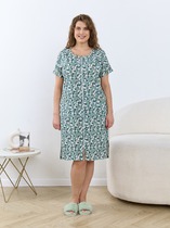 Женская сорочка выполнена из вискозного полотна, полуприталенного кроя, лиф декорирован имитацией планки с кружевом и бантиками из атласной ленты.