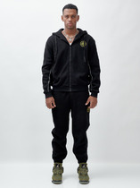 Брюки мужские из хлопкового трикотажа прямого силуэта. Пояс притачной регулируется шнуром. Карманы на молниях, с листочками.