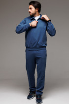 Для образа игрока в гольф не хватает воротничка! Воротник - деталь свитшота с застежкой поло, которая почекнет весь аутфит. Брюки со стрелками добавят образу строгости и деловитости, что позволит носить костюм как на прогулки, так и в офис. Пошит из комфортной ткани - футера 3-нитки без начеса.