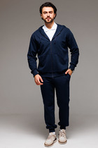 Классический мужской спортивный костюм состоит из худи на застёжке-молнии и брюк на манжетах. Всесезонная ткань сделает его любимым в Вашем гардеробе как для дома, так и улицы.