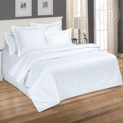 Страйп-сатин – это ткань с классическим жаккардовым плетением нитей, образующим чередование полос. В ее состав входит 100% хлопок, что обеспечивает двойной комфорт и исключительную мягкость материала. Одним из важных свойств ткани является ее способность сохранять форму. Даже при многократных стирках, она не вытянется и не потеряет характерный шелковистый блеск.