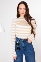 Модель Funky в стиле «оверсайз» свободного кроя с высоким горлом. Нежный, мягкий джемпер, очень приятный на ощупь, выполнен из полушерсти мериноса. Эта базовая модель коллекции AIM clothing, связанная английской резинкой, идеально впишется в гардероб любой современной девушки. Наличие высокого горла – отличная альтернатива шарфу.