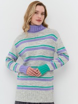 Свитшот свободного кроя, выполнен из трикотажной хлопковой ткани. Рукав втачной со спущенной проймой, низ рукава обработан довязом с нитью из люрекса, как на манжете, так и на горловине. V - образный вырез визуально удлиняет шею. Разрезные детали из контрастной расцветки выгодно создают нужные линии и зрительно вытягивают силуэт.