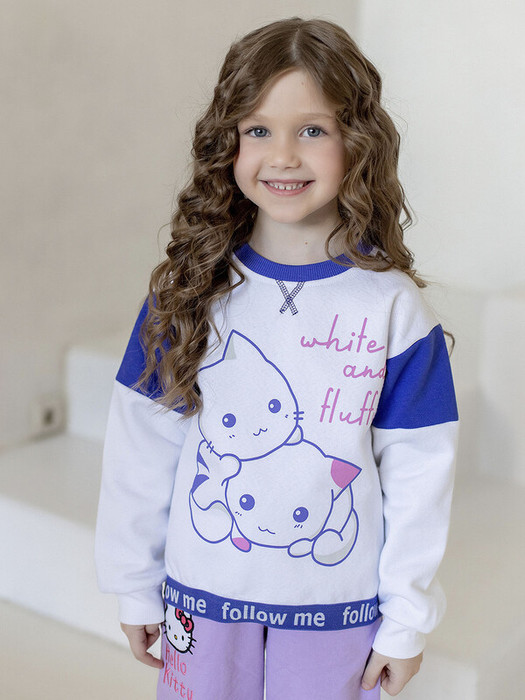 Свитшот с длинным рукавом для девочки. Эластичные манжеты рукавов и ворот, принт с кошечками.