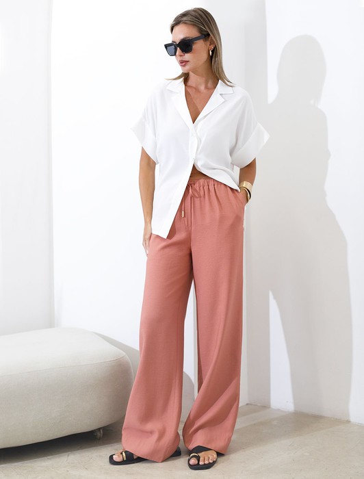 Состав: 70%Лиоцелл (Вис) 30%ПЭ Параметры модели на первом фото: Рост 172, бюст 88, талия 64, бедра 88Брюки свободного кроя выполнены из плотного лиоцелла. Модель дополнена карманами и поясом с эластичной резинкой и регулируемым шнурком с золотистой фурнитурой. Ткань изделия отлично держит форму, плавно драпируется и не просвечивает. В теплое время года приятно охлаждает кожу. Добавление синтетических волокон в составе изделия, предотвращает сминаемостьи поддерживает формоустойчивость. Брюки сочетаются в костюме с топом D23.063, блузкой D29.266, D29.267 и жилетом D27.002