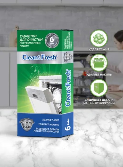 !Таблетки для очистки ПММ "Clean&Fresh", 6 таб.