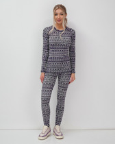 Описание: Хлопковое трикотажное полотно с начесом. Джемпер- приталенный силуэт, динный рукав реглан, круглая горловина. Манжет на рукавах и брюках. Полочка украшена печатью гжель. Легинсы - облегающий силуэт, пояс на резинке.
