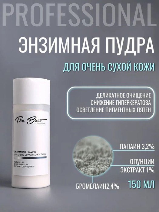 Тонкодисперсная энзимная пудра для очень сухой кожи лица на основе натуральных компонентов глубоко, но бережно очищает поры, мягко шлифует рельеф, уменьшает появление комедонов, придаёт коже импульс к регенерации и оживляет её за счёт мягкого эффекта пилинга.