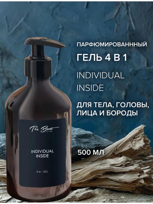 Натуральный гель 4 в 1 для тела, головы, лица и бороды INDIVIDUAL INSIDE эффективно очищает, увлажняет и питает, оставляя легкий аромат и ощущение свежести.