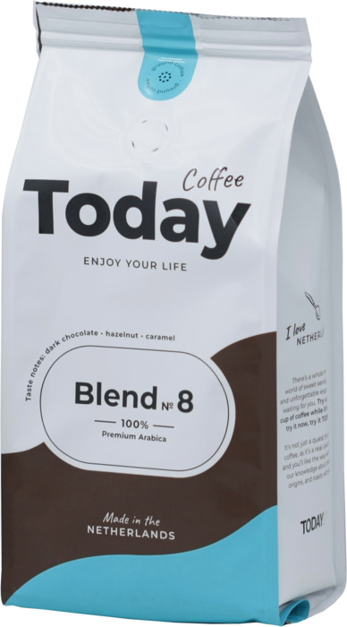 Натуральный молотый кофе. Состав: 100% Арабика.Зерна для Blend №8 выращены и собраны на плантациях Центральной и Южной Америки. Смесь имеет мягкую, среднюю обжарку, благодаря которой вкус кофе получается сбалансированным, с низкой кислотностью, сладкими ореховыми, карамельными и шоколадными нотками и бархатным послевкусием.