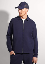 Толстовка мужская из трикотажного полотна "интерло-пике". Толстовка свободного покроя, с длинными втачными рукавами, заниженными проймами и воротником-стойкой. Полочка с кокетками, с неразъемной застежкой "молния", обработанной в рамке. Нижние срезы рукавов обработаны с эластичной тесьмой, нижний срез изделия - подгибкой, с эластичным шнуром и фиксаторлм для регулировки ширины изделия на этом участке.