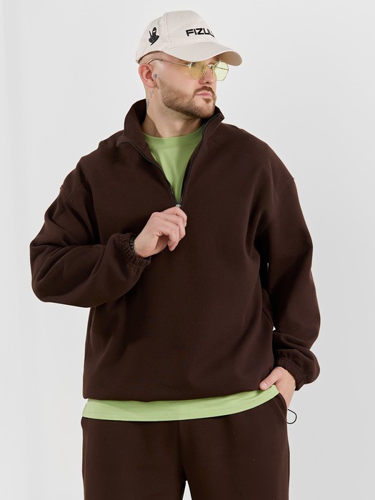Толстовка мужская из трикотажного полотна "интерло-пике". Толстовка свободного покроя, с длинными втачными рукавами, заниженными проймами и воротником-стойкой. Полочка с кокетками, с неразъемной застежкой "молния", обработанной в рамке. Нижние срезы рукавов обработаны с эластичной тесьмой, нижний срез изделия - подгибкой, с эластичным шнуром и фиксаторлм для регулировки ширины изделия на этом участке.