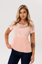 Блуза “персиковая дымка” - мягкая и утончённая модель, в которой лёгкость сочетается с аккуратной выразительностью линий. Полуприлегающий силуэт плавно подчёркивает фигуру, а фигурный подрез по переду в области талии добавляет изящества и формирует красивую, гармоничную линию. Лиф с наложением кружевного полотна создаёт романтичное настроение и делает образ особенно лёгким.