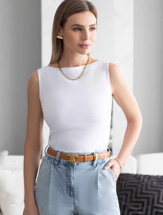 Состав: 92%Хлопок 8%ПУ Плотность: 170 Г/м2 Параметры модели на первом фото: Рост 170, бюст 89, талия 63, бедра 92Топ выполнен из премиального хлопка с эластаном. Лаконичная базовая модель впишется в любой гардероб и дополнит многослойные образы. Материал изделия хорошо тянется и гарантирует идеальную посадку по фигуре. Из украшений только металлическим логотипом бренда.