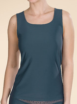 Нарядный атласный топ с нагрудными вытачками, V-образным вырезом горловины и слегка спущенным плечом. В боковых швах по низу разрезы.
