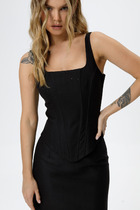 Корсет с глубоким квадратным вырезом из костюмной ткани с пайетками.