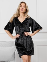 Коллекция "СНЕЖНОСТЬ" Туника с полукруглой горловиной, длинным рукавом, завершающим манжетом. Вставка из компаньона по длине полочки. Низ модели собран на пояс, который отлично держит форму. Ростовка: 164-168. Состав: Велюр люрекс (хлопок 80%, полиэстер 20%)