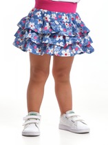 Трикотажная юбка А-силуэта, декорированная бахромой из шифона. Талия на резинке с люрексом.На ребенке представлен размер 110:- Ширина изделия по линии талии 23,7 см- Ширина по низу изделия 38,5 см- Длина изделия 27,5 смРазница между размерами составляет 1,5 см.
