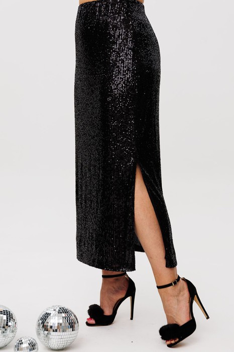 Эта роскошная миди-юбка, усыпанная сияющими пайетками, создана, чтобы приковывать взгляды и добавлять блеска любому образу. Стильный разрез на левой ножке привносит нотку элегантности и лёгкой игривости, а мягкий пояс на резинке обеспечивает комфортное прилегание. Юбка выполнена на подкладке, что позволяет чувствовать себя уверенно и комфортно.