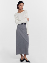 Vilatte Юбка миди с разрезом из струящегося плотного сатина D26.205 кофейный