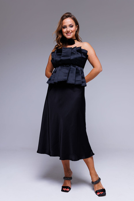 Юбка  миди черный атлас