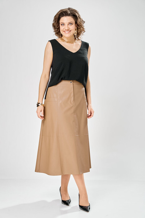 Юбка А образного силуэта, по переду и спинке рельефные швы, по переду от рельефа до бокового шва, карманы с листочкой, застежка на молнию в центральном шве переда. Верх юбки на поясе с застежкой на кнопки.