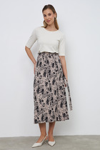 Юбка, прямая, в длине миди с разрезом по переду. В боковых швах карманы с отрезным бочком, сзади имитация кармана в рамку. Застежка на молнию и петлю с пуговицей. Пояс отрезной. Длина по боковому шву - 99 см.
