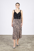Юбка миди прямая с шлицей по переду. Застежка на молнию и петли с пуговицами. По переду фигурные карманы. Справа декоративный накладной клапан. Пояс отрезной с вставками эластичной тесьмы.