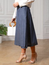 22.03 Vilatte Юбка миди на запАх в полоску из легкого хлопкового поплина D26.20