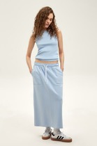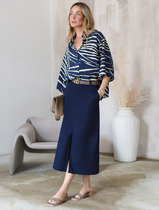 Vilatte Юбка-миди из хлопка с разрезом D26.182 синий
