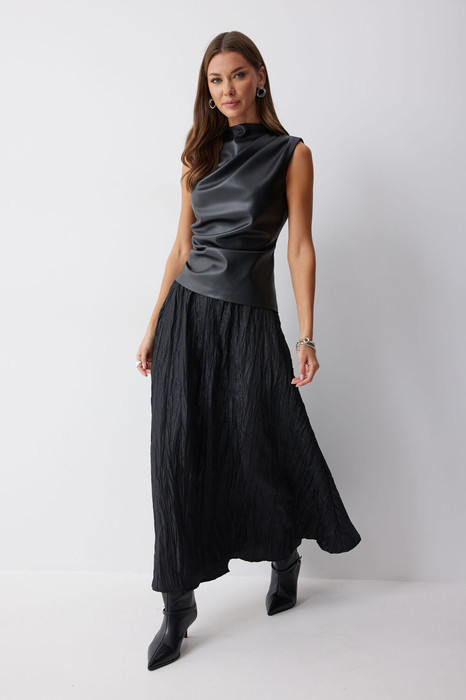 Юбка- полусолнце из жатой ткани, на притачном декоративном поясе (эластичной тесьме).