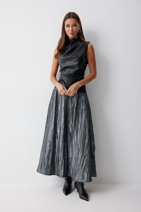 Юбка- полусолнце из жатой ткани, на притачном декоративном поясе (эластичной тесьме).