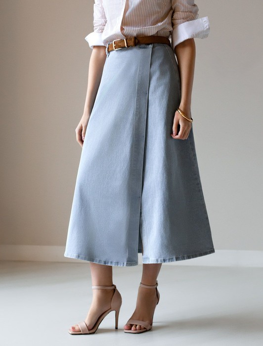 Юбка на запАх из эластичного денима