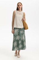 Юбка - солнце длиной миди из облегчённого денима с узким поясом. В боковых швах расположены карманы. Застежка на кнопки с цельнокроеной планкой. Длина около 94 см. Изделие без подкладки.