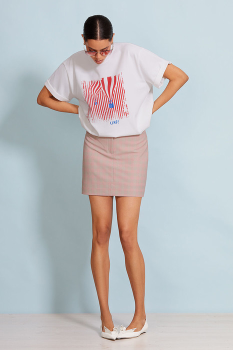 Юбка длина Mini. Юбка на поясе со шлевками. Застежка спереди.    Изделие на подкладке.