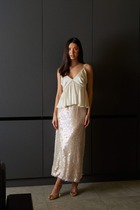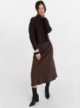 Стильная юбка женственной формы, длины миди. По переду и спинки юбки, кокетка с широкими шлевками, где можно одеть декоративный пояс. По переду юбки шлицы с отделочнными пуговицами. По среднему шву спинки функциональная застежка на петли и пуговиц.