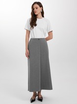 Модель прямого силуэта, на подкладе. Пояс притачной, частично собран на резину, со шлёвками. Спереди прорезные карманы с листочкой и высокий разрез в среднем шве. Застёжка на молнию и крючок на поясе. Сзади средний шов заканчивается шлицей. Ремень в комплект не входит.
