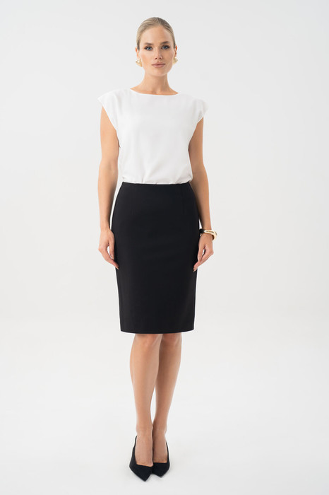 Юбка женская черная URS – это классический элемент базового гардероба, который остается актуальным в любое время года. Юбка прекрасно комбинируется с блузой 24-425-1 и является комплектом к жакету 25-641-1. Юбка женская, зауженная к низу, с посадкой на талии,  выполнена из трикотажного полотна, на отлетной по низу подкладке. Юбка предназначена для повседневной носки.
