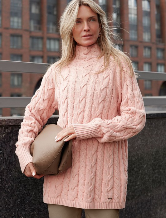 Совместные покупки Нижневартовск Женская одежда Костюмы, комплекты — Удлиненный свитер фактурной вязки с узором косы