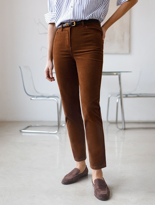 АКЦИЯ 8 марта! Укороченные эластичные брюки слим из микро вельвета